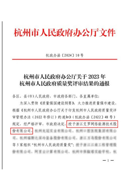 荣获杭州市人民政府质量奖
