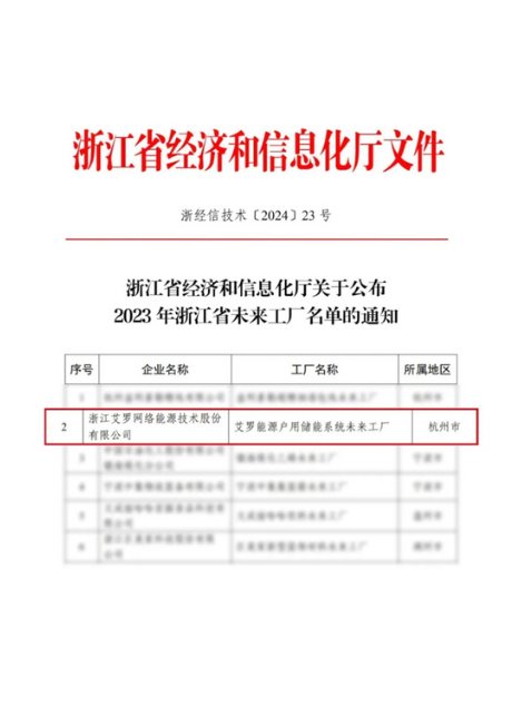 “杏彩能源户用储能系统未来工厂”上榜浙江省未来工厂